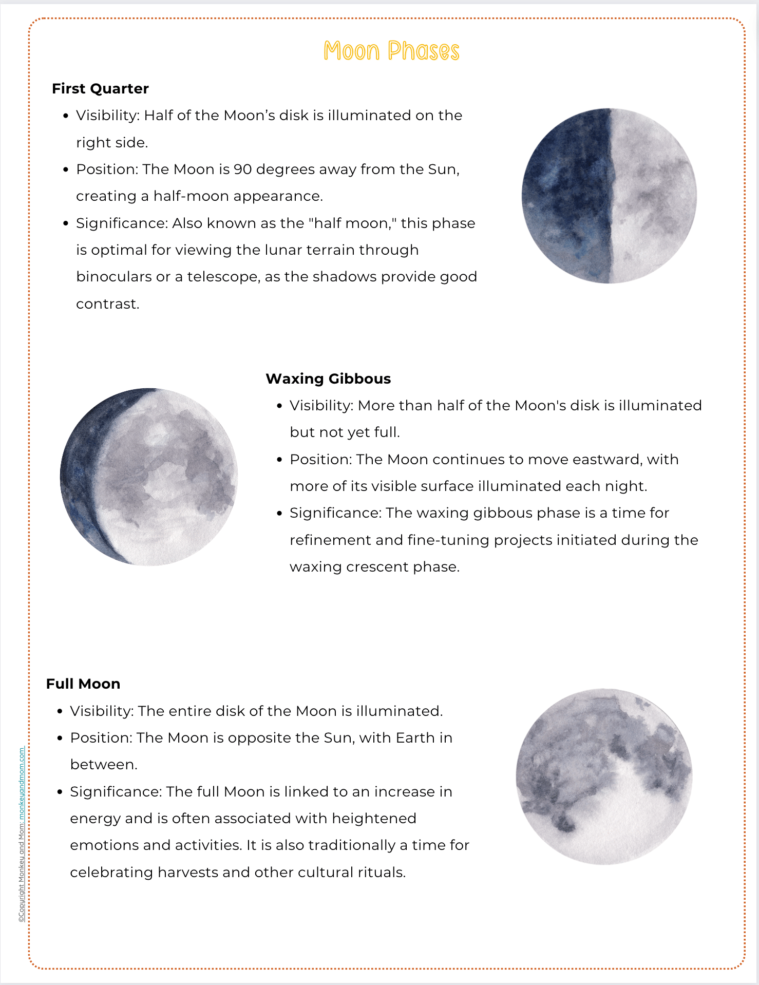 - Beautiful watercolor illustrations that bring lunar topics to life.