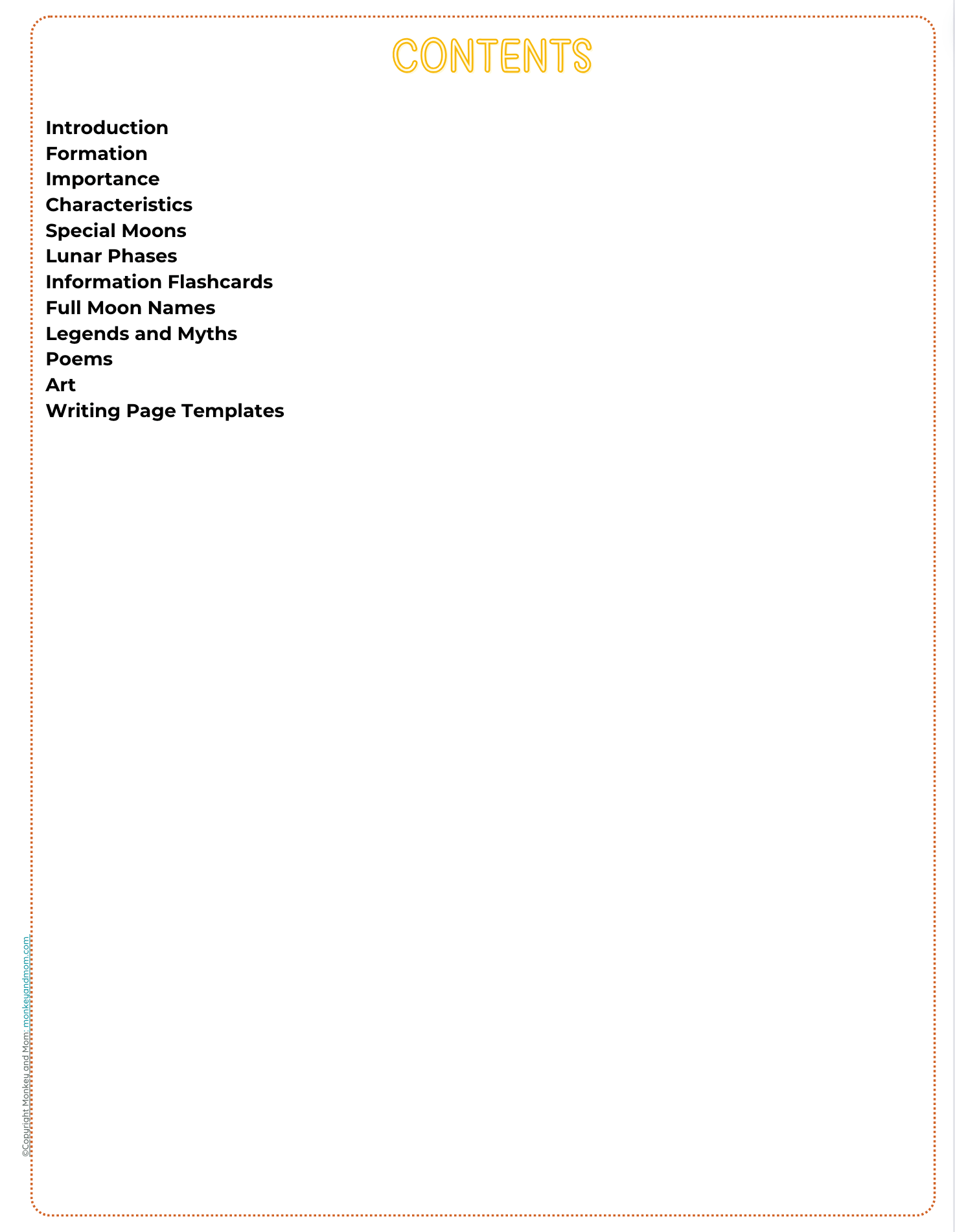 This printable contains facts about the Moon and none of the terms have been dumbed down. It's perfectly suited for curious or gifted kids.